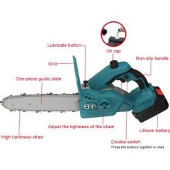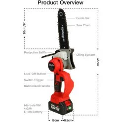 MOHOO Elektrische Mini-kettensägen Akku-Kettensägen 6 Zoll Elektrosäge Kabellos Mit 2*Akku