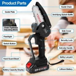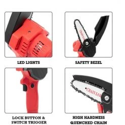 THSINDE Akku-Kettensäge Handgeführte Akku-Kettensäge Mit Ladegerät Und 2 Akkus – Rot