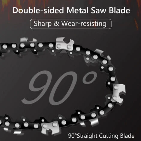 [Leistungsstarkes Schneiden] Die elektrische Kettensage ist mit einem doppelseitigen Metallsageblatt und einem geraden 90°-Schneidblatt ausgestattet, das scharf und verschleißfest ist und eine starke Schnittkraft hat.