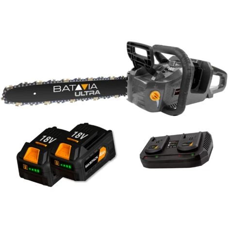 Die Vorteile der Kettensäge * Das perfekte Werkzeug zum Schneiden und Trimmen kleiner und mittelgroßer Bäume * Der Komfort eines 18V MAXXPACK-Akkus, die Leistung eines 36V-Akkus * Eine elektrische Kettensäge, keine Emission von schädlichen Gasen und ist besser für die Umwelt * Automatischer Ölspender, für eine wartungsarme Maschine und den Dauereinsatz * Einfach zu bedienen und mit einer Kettenbremse ausgestattet, für zusätzliche Sicherheit THE POWER TO SAW – 36V KETTENSÄGE Die Batavia 36V-Kettensäge eignet sich zum Schneiden und Trimmen kleiner und mittelgroßer Bäume. Sie ist die perfekte Kettensäge für jeden Gärtner, Handwerker oder ambitionierten Heimwerker. Die Säge ist mit einem bürstenlosen Motor ausgestattet, der für mehr Leistung, eine längere Laufzeit und eine längere Lebensdauer sorgt. Der bürstenlose Motor in Kombination mit einem automatischen Ölspender sorgt für eine wartungsarme Kettensäge und