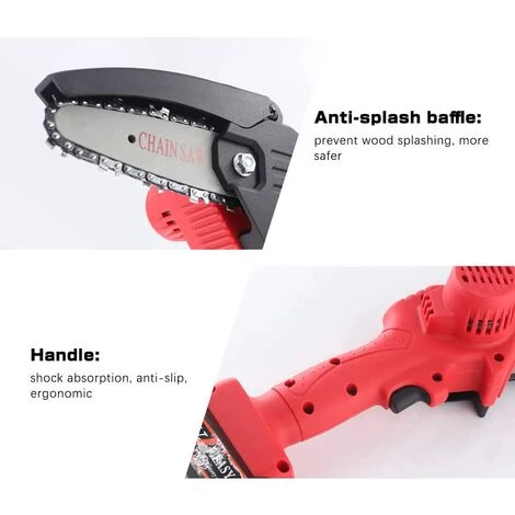 ��LEISTUNGSF?HIGES DYNAMISCHES SYSTEM�� Diese kleine Kettens?ge verwendet einen reinen Kupfermotor, der f��r eine lange Lebensdauer sorgen kann eine schnellere Geschwindigkeit und mehr Leistung. Die eingebaute Steuerplatine verf��gt ��ber eine ?berlastschutzfunktion, und der Motor stoppt automatisch, wenn er ��berhitzt ist, was die Verwendung sicherer macht.