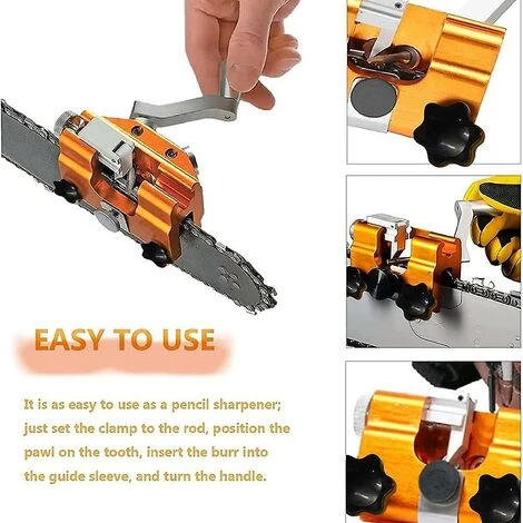 Wie neu: Verwenden Sie den Kettenschärfapparat, um Ihre Kettensäge wie neu scharf zu halten, wodurch Ihre Arbeit schneller und wirtschaftlicher wird