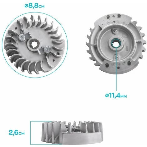 Komplettes magnetisches Schwungrad aus einer haltbaren Aluminiumlegierung. Kompatibel mit den meisten 25-cm³-Kettensägen auf dem Markt. Äußerst zuverlässig, langlebig und einfach zu installieren.
