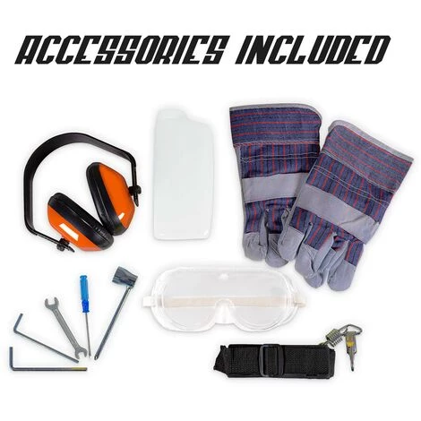 – BONUS-ZUBEHÖR-SET (Werkzeugset, Handschuhe, Brille, Kopfhörer, Schulterriemen, Kraftstoffmischer)