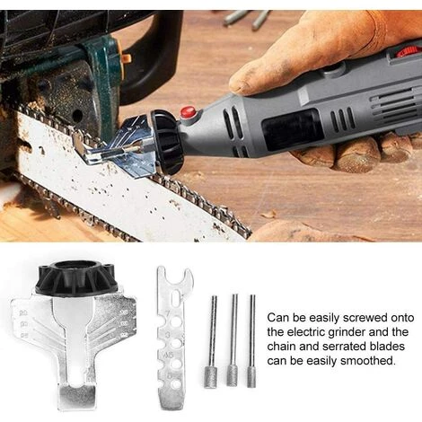 2. Lässt sich einfach auf den Elektroschleifer und die Kette aufschrauben und die gezahnten Klingen lassen sich leicht schleifen.