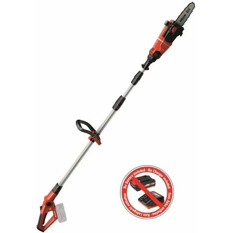 Einhell 18V Akku-Hochentaster GE-LC 18 LI T- Solo | Hersteller-Nr.: 3410810 | EAN: 4006825604337 | • 90° drehbarer Aufsatz für mühelosen Horizontalschnitt• Motorkopf 7-fach neigbar• Hauptgriff 4-fach neigbar• Stufenlos arretierbarer Alu-Teleskopstiel (880 – 1820 mm)• Verstellbarer Zusatzhandgriff mit Schnellverschluß• OREGON-Qualitätsschwert und –Kette• Werkzeuglose Kettenspannung und Kettenwechsel• Metallgetriebe für hohe Lebensdauer• Krallenanschlag• Kettenfangbolzen• Tragegurt• Ölbehälter für automatische Kettenschmierung