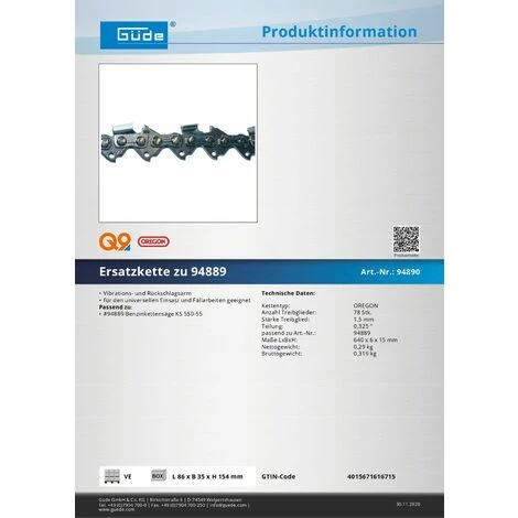 Güde Ersatzkette für 94889 Kettensäge / Motorsäge S 500-55
