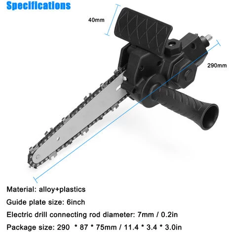 Möchten Sie Ihre elektrische Bohrmaschine in eine elektrische Kettensäge umbauen? Dann können Sie versuchen, diese ändern Zubehör. Mit diesem Zubehörsatz können Sie eine elektrische Kettensäge erhalten, indem Sie Ihre elektrische Bohrmaschine modifizieren, anstatt eine neue zu kaufen. Wenn Sie auf der Suche nach diesem Produkt sind, probieren Sie es aus, es wird Sie nicht enttäuschen.