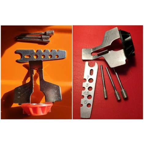 【Funzione】: le guide degli accessori offrono il miglior angolo di affilatura. Questo speciale kit consente di affilare rapidamente e facilmente motoseghe smussate a taglio lento. Ci sono 2 pezzi nella confezione, i colori sono nero e rosso.