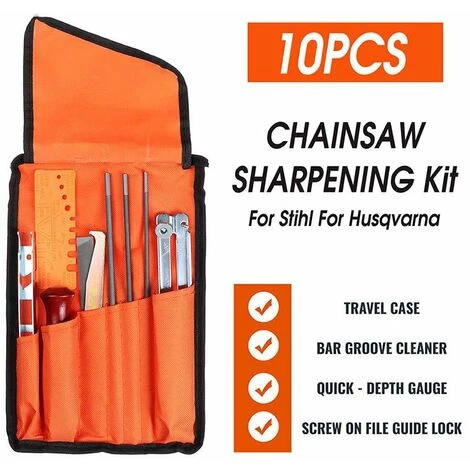 1 x Tragetasche beinhaltet:1 Satz x 10-teiliges Kettensägenschärfer-Feilen-Kit