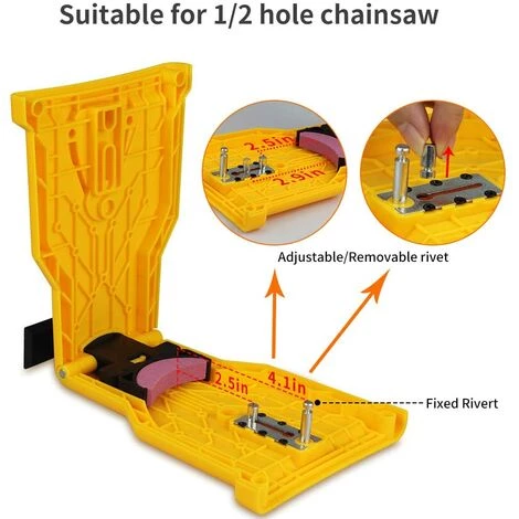 【Einfach zu bedienen】 Überprüfen Sie, ob Ihr Kettensägenblatt zwei Löcher hat. Wenn Ihr Sägeblatt ein Loch hat, können Sie den Gleitzylinder am Schärfer entfernen, dann installieren und verwenden. Denken Sie daran, die schwarzen Schrauben zu befestigen und festzuziehen, bevor Sie das Messer schärfen.