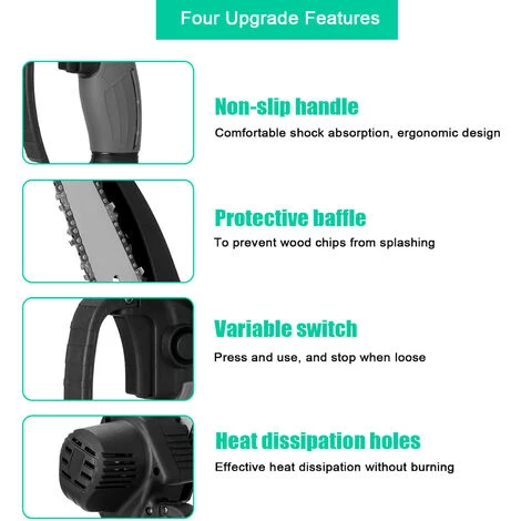 Dies ist eine Art Qualitäts-Astsäge aus hochwertigem Material, praktisch, einfach zu bedienen und zu verwenden, breite Anwendungsbereiche, lange Lebensdauer. Nimmt Bürstenmotor, Schnellstart, rechtzeitiges Bremsen, stufenlose Geschwindigkeitsregulierung in einem weiten Bereich, relativ einfache Steuerung der Schaltung und so weiter an. Die Sägekette wurde durch hohe Temperaturen tief abgeschreckt, mit scharfen Sägezähnen, verschleißfesterem, glattem Schnitt. Perfekt zum Beschneiden, Spalten von Brennholz, Schneiden von Holz usw. Probieren Sie es aus.