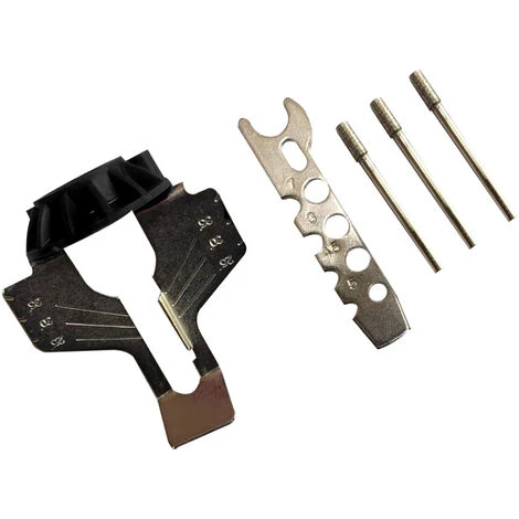 Dies ist ein Satz hochwertiger Kettensägenschärfwerkzeuge, die aus Eisenmaterial mit hoher Härte und Schlagfestigkeit bestehen. Der Arbeitswinkel des Kettensägenschärfers ist einstellbar, Sie können ihn je nach Arbeitsanforderungen auf 25 °, 30 °, 35 ° einstellen. Ausgestattet mit 3 Schleifstücken, einfache Installation und einfache Demontage. Wird mit einem Einstellschlüssel geliefert und kann auch zum Halten der Schleifbits verwendet werden. Probieren Sie es aus.