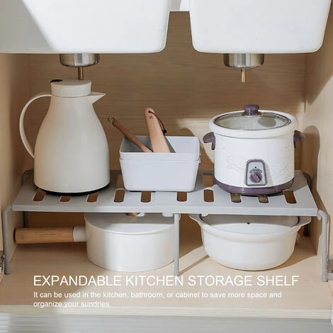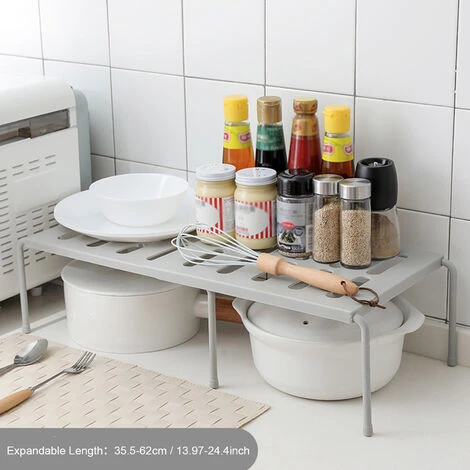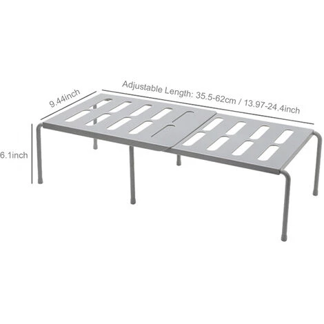 Das Schrankregal kann horizontal von 13,97 bis 24,4 Zoll erweitert werden, um Ihren unterschiedlichen Anforderungen gerecht zu werden. Ideal zum Organisieren von Tellern, Tassen, Flaschen und Dosen in Ihrem Schrank, Ihrer Arbeitsplatte oder sogar Ihrem Kühlschrank. Es kann in der Küche, im Bad oder im Schrank verwendet werden, um mehr Platz zu sparen und Ihre Kleinigkeiten zu organisieren.