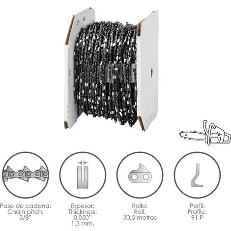 Kettensägenkette 3/8 „/0,050“ 1,3 mm. /91 P/Rolle 30,5 Meter.Kettensägekette