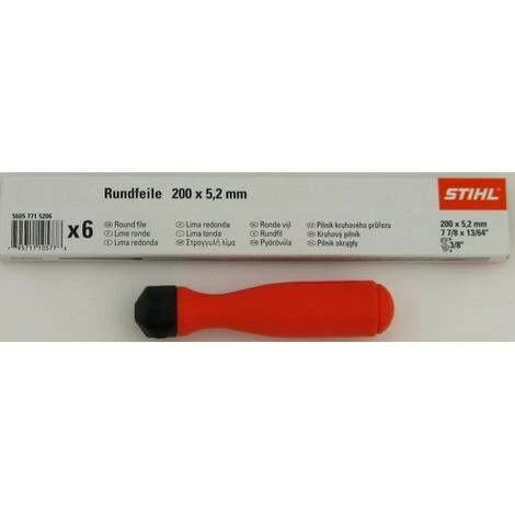 STIHL Rundfeile 6 Stück mit Feilenhalter für Sägeketten Produkteigenschaften STIHL Rundfeile 6 Stück mit Feilenhalter von Stihl für Sägeketten Lieferumfang:1xSTIHL Rundfeile 6 Stück für Sägeketten 5,2 mm für 3/8 (5605 771 5206), mit 1 Kunsstoff Feilenhalter