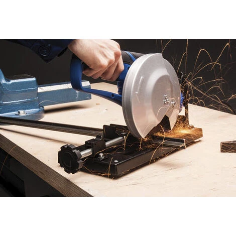 Der praktische, integrierte Schraubstock ist zum Festklemmen des Materials. Mit Spindelarretierung zum einfachen Trennscheibenwechsel.